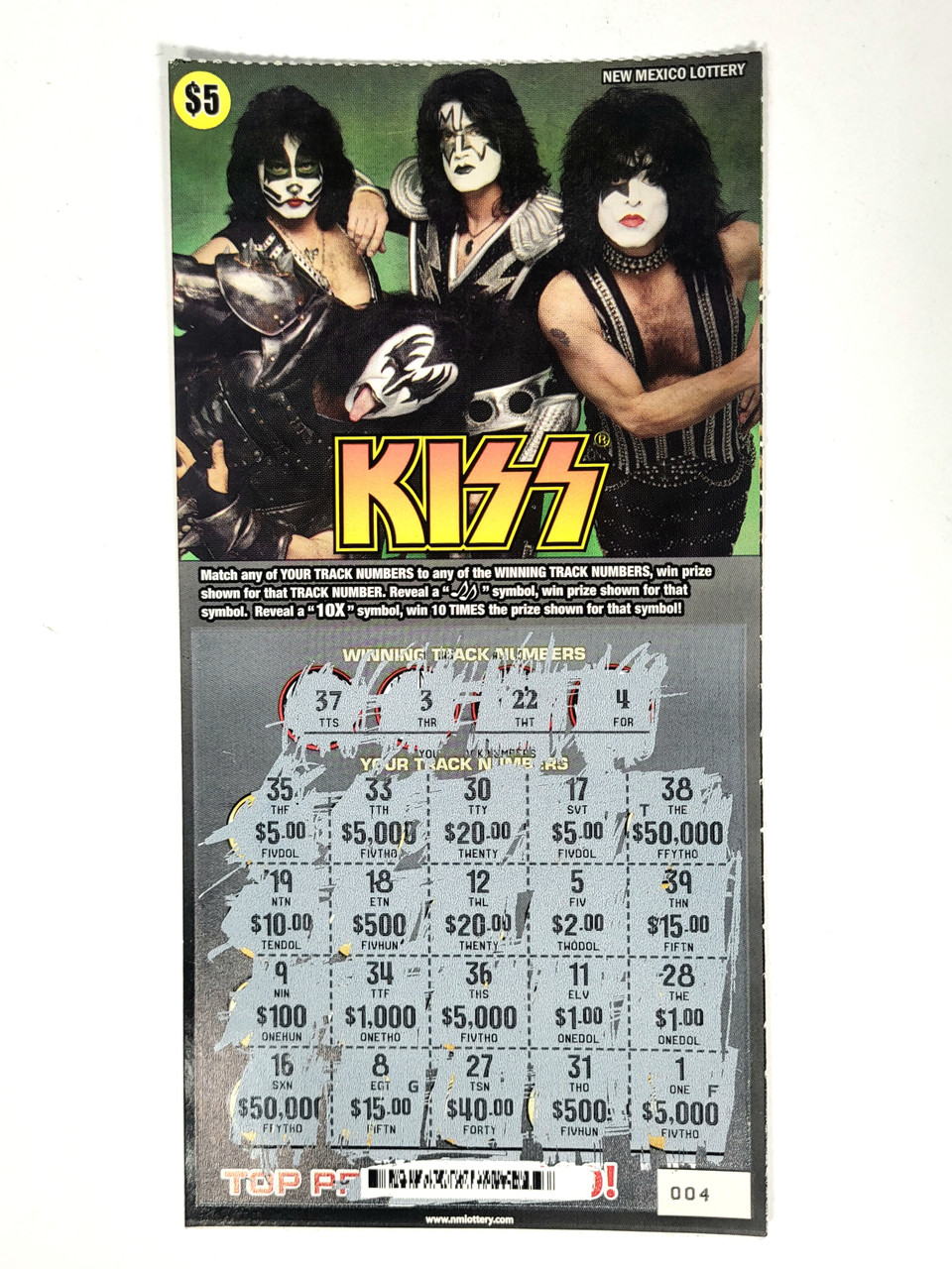 Official KISS lottery ticket from New Mexico.