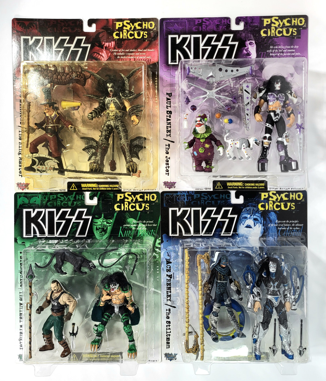 Officially licensed KISS Psycho Circus figures from 1998. Set of 4 figures, 8 inches tall.