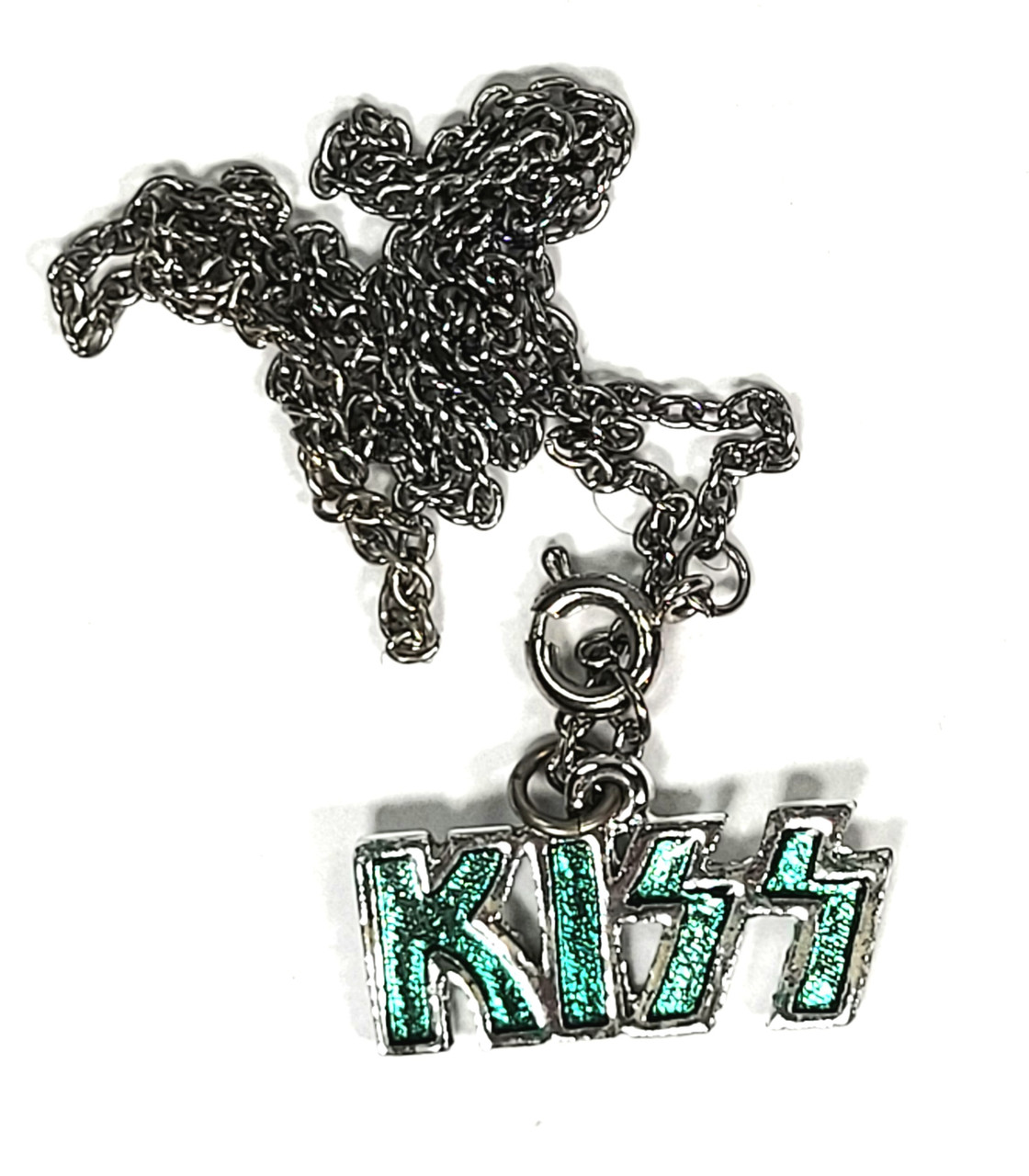 Vintage KISS Silver-Green Logo necklace.