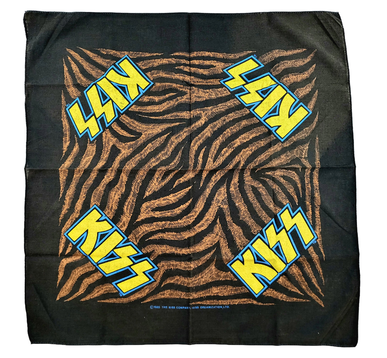 Official KISS Animalize Bandana from 1985. Features non-makeup KISS with Eric Carr & Bruce Kulick.